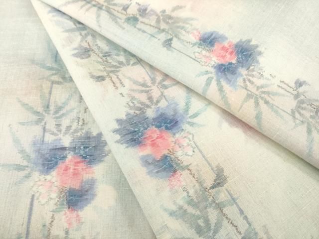 平和屋着物 小千谷紬 笹竹花文 正絹 ck