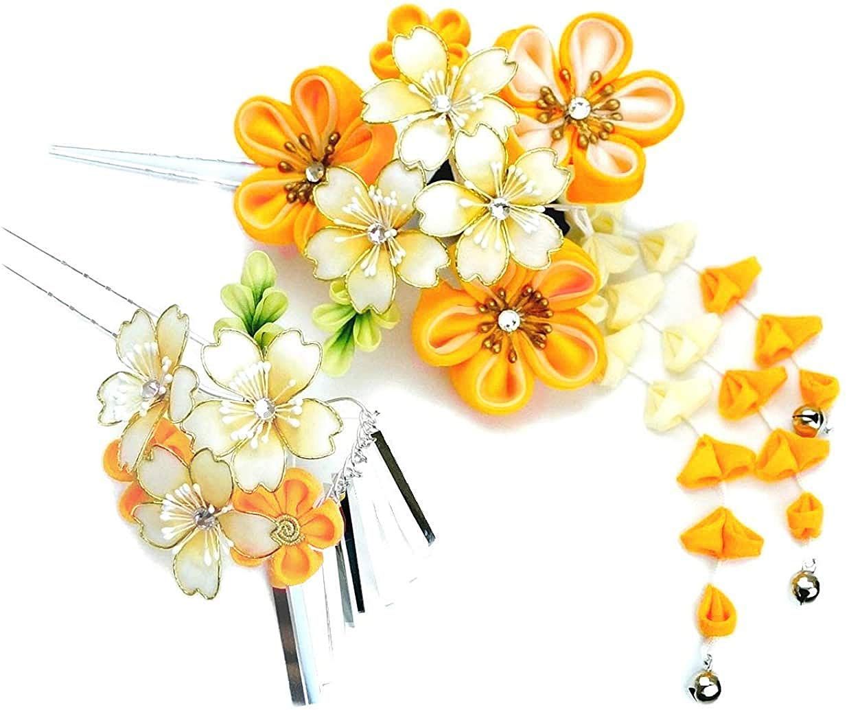 商品 wk-346 黄色 成人式 つまみ細工 振袖 桜 髪飾り2点セット 銀ビラ 京都うさぎ堂