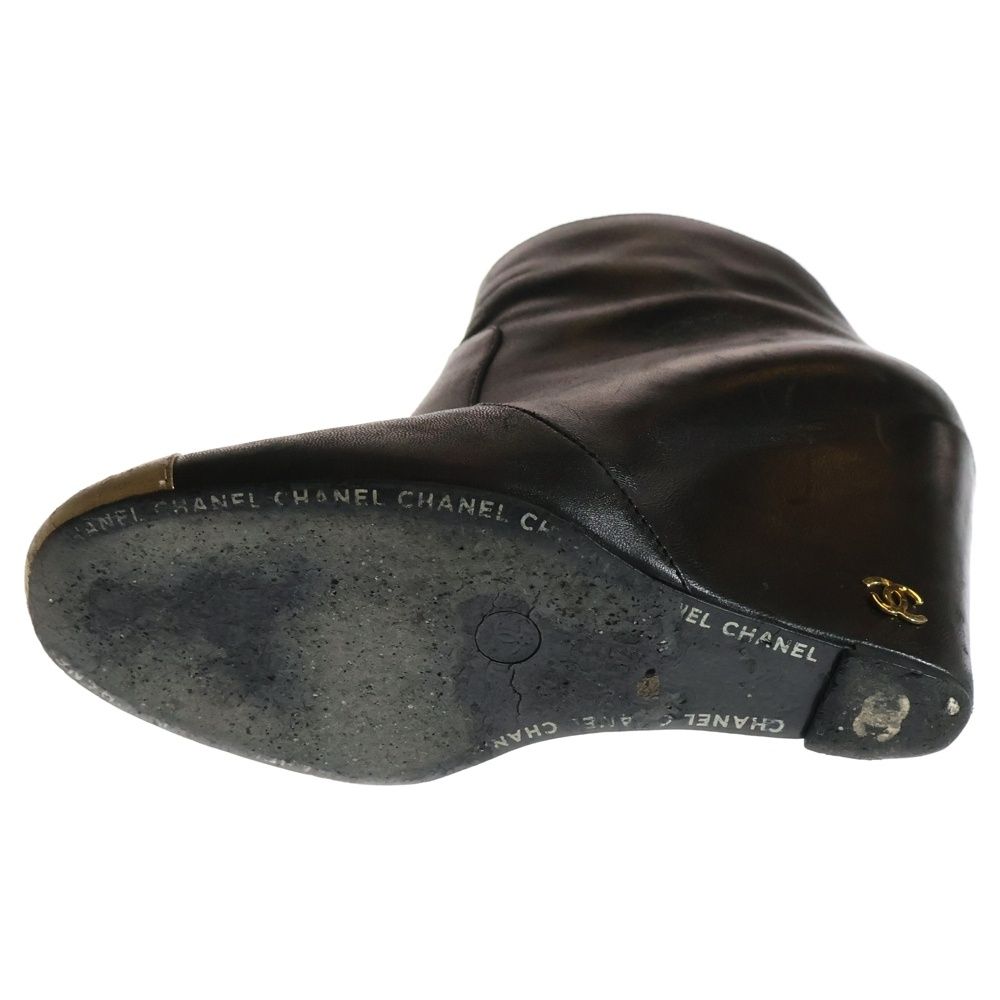 CHANEL シャネル ココマーク レザー ショートブーツ ブラック ゴールド レディース