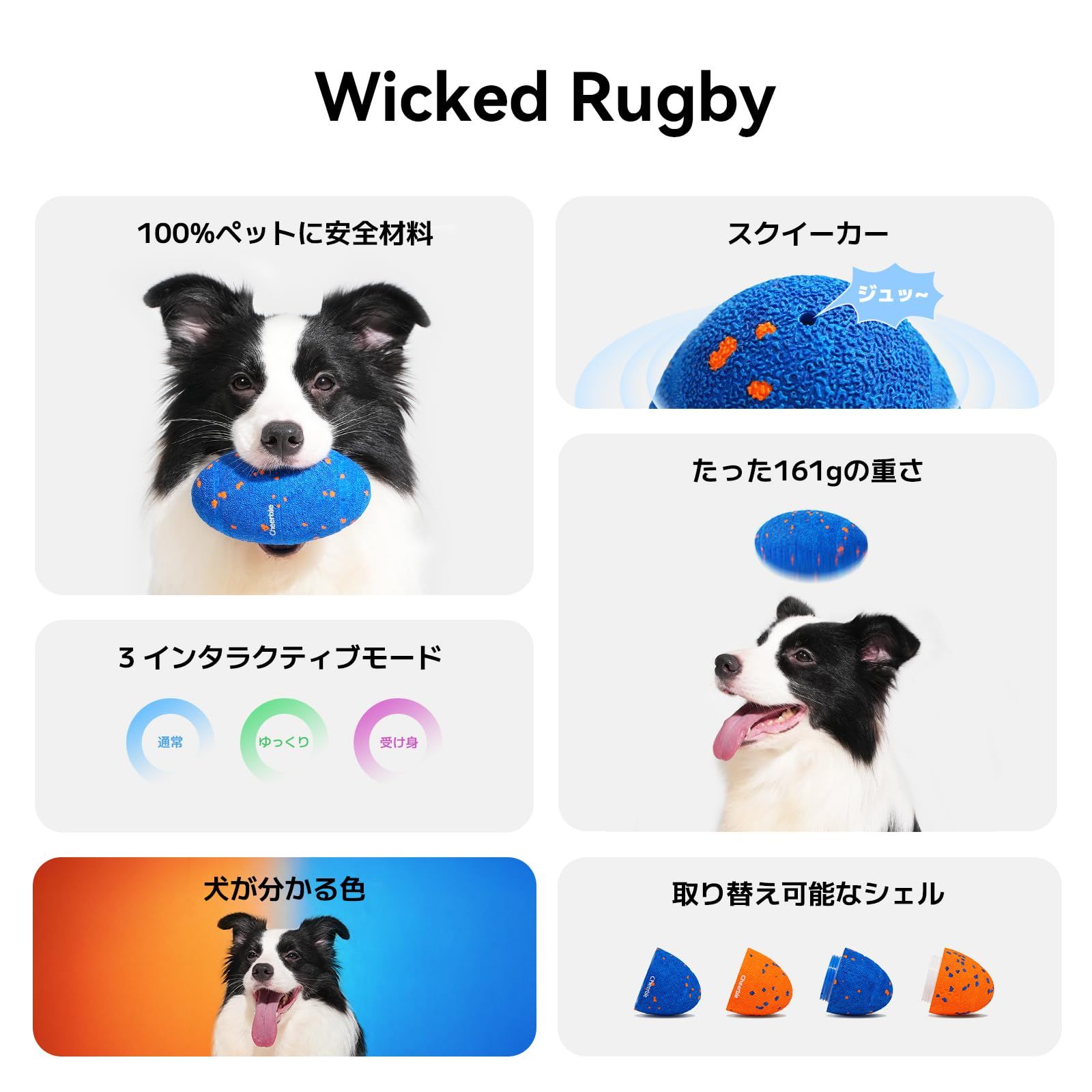 Cheerble 犬自動ボール【2025新型登場】3モード切替 交換可能なカバー 充電式 161gの超軽量 犬に優しいE-TPU素材採用 ラグビー形 音が鳴るおもちゃ 回転・跳ねる犬おもちゃ 中大型犬向け ストレス・運動不足解消 屋内外OK (Wicked Rugby ロイヤルブルー)