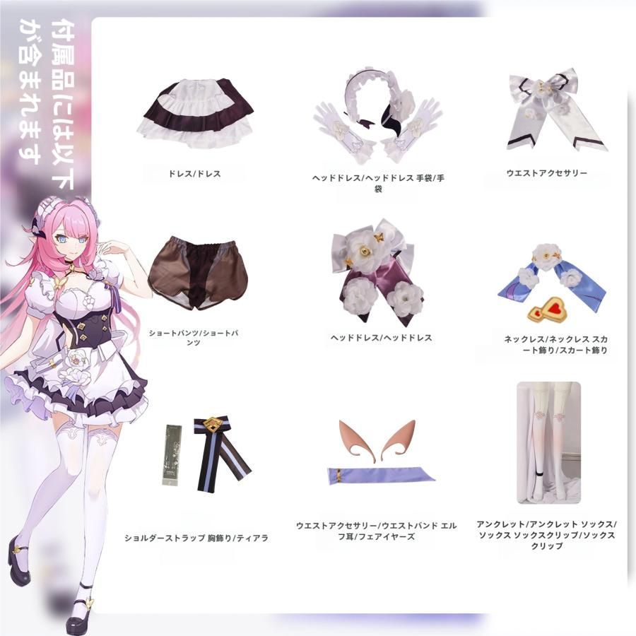 高品質 崩壊3 rd エリシア ピンクの妖精 メイド コスプレ衣装 フルセット meilu 51205