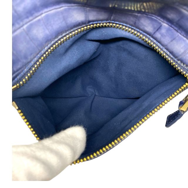 ペレリールッソ ハンドバッグ ショルダーバッグ ワンショルダー 2 way クロコダイルレザー ワニ革 チャーム付 ブルー Pelley Lusso