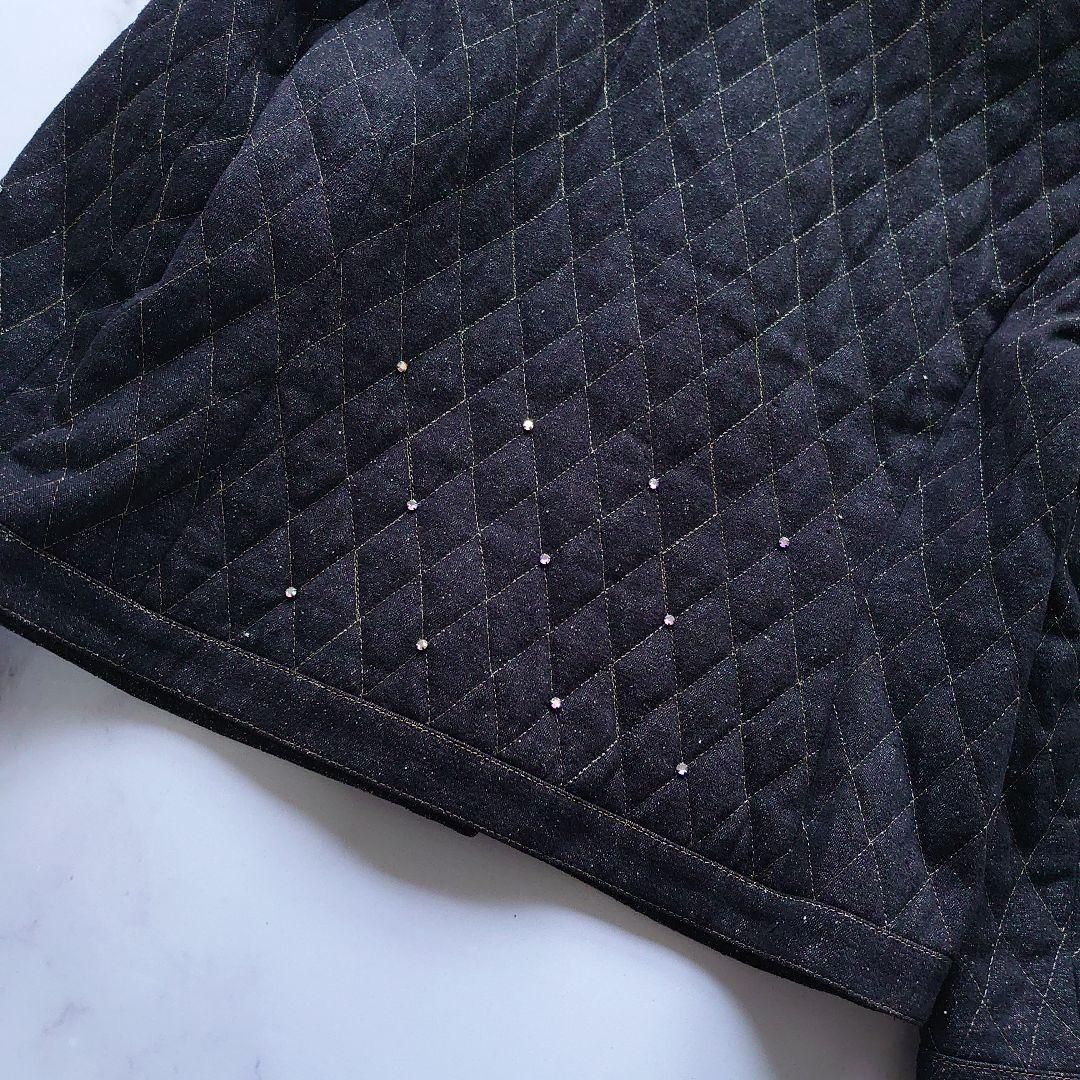 LEONARD レオナール ラインストーン ビジュー キルティング シルク ノーカラージャケット 中綿 サイズM 9 長袖 黒 ブラック デニム アウター コート レディース