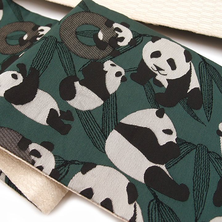 おりびと 半幅帯 半巾帯 織美桐 リバーシブル 浴衣にも 浴衣帯 カジュアル 仕立て済み パンダ柄 熊猫 深緑色 グリーン かわいい おしゃれ レディース g 554 Si