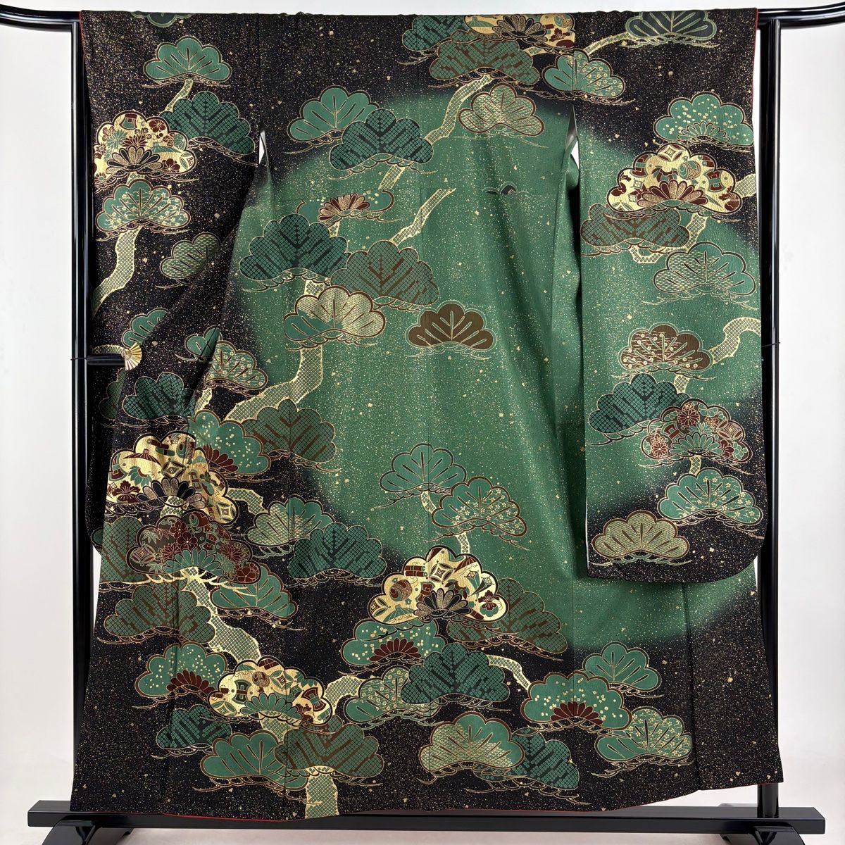 振袖 身丈156 cm 裄丈64 M 袷 笠松 宝尽くし 金彩 染め分け 黒 正絹 秀品