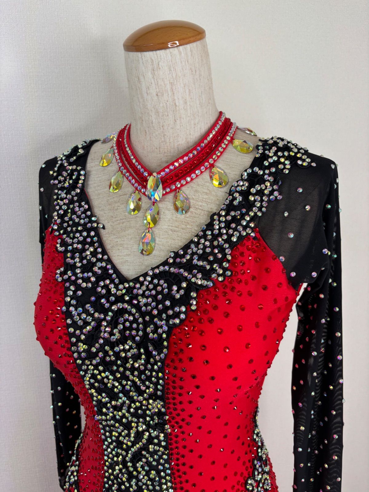 社交ダンス 豪華 ラテンドレス レッド×ブラック チョーカー付き MLサイズ 衣装