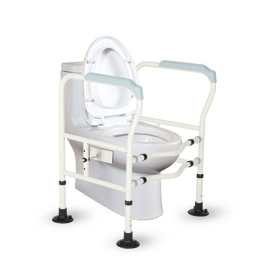 【商品仕様/サイズ調整楽々】材質:高強度炭素鋼、頑丈、耐久で錆びにくいです;重量:約5.3KG;安全耐荷重:150KG。サイズ:幅56-64cm、高さ68.5-76cm、奥行き46cm。このトイレ用手すりは高さが五つの階段調整可能で、幅が3つの階段調整可能です。利用者が自分の都合や、トイレのサイズによって、自由に調整できます。