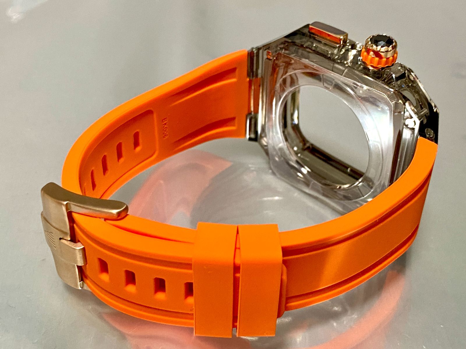 スモーク オレンジ インディコ アップルウォッチ ラバーベルト カバー クリア ケース 40 mm 41 44 45 4 5 6 7 8 se スポーツ メンズ レディース 4スクリュー Apple Watch バンド