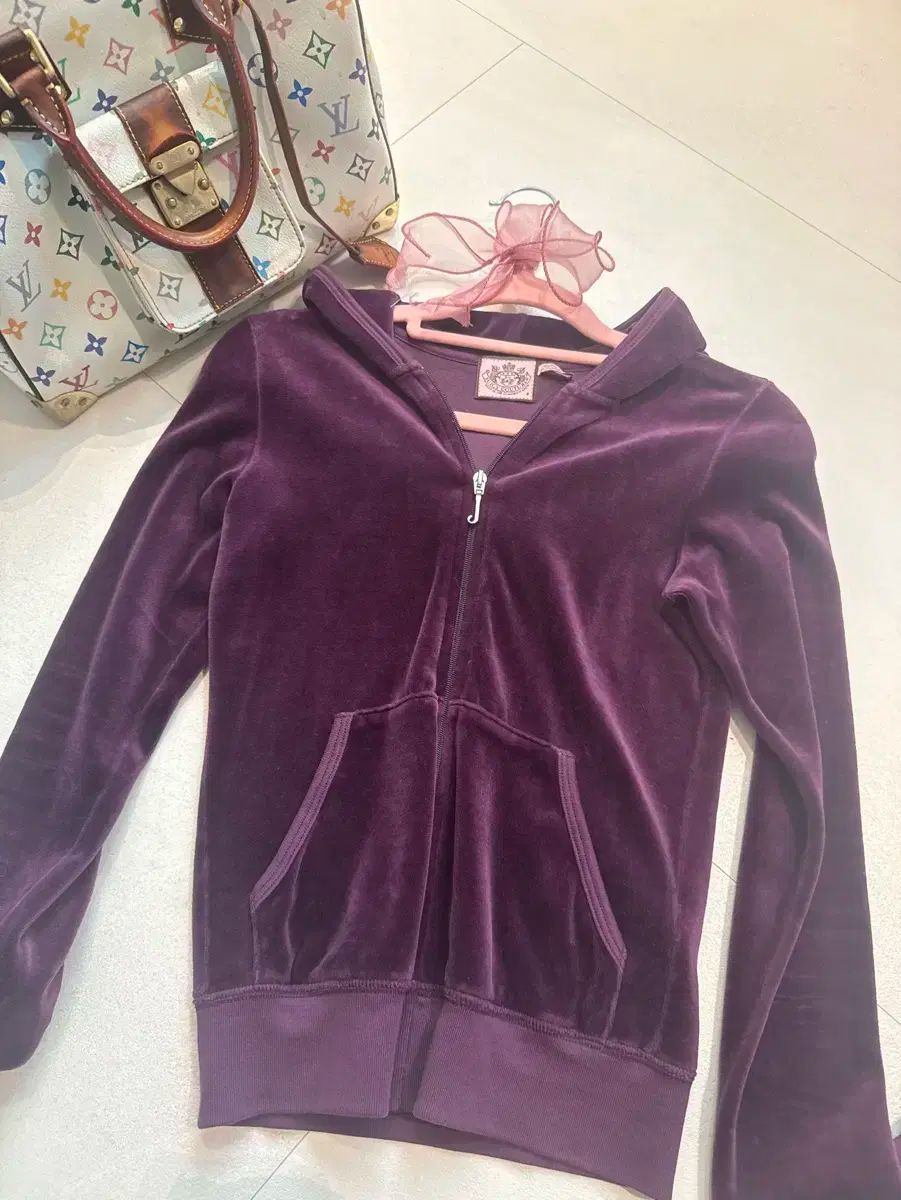 JUICY COUTURE ジューシークチュール y 2 k ベロア ジップアップパーカー フード付き 紫 ヴィンテージ 必須アイテム