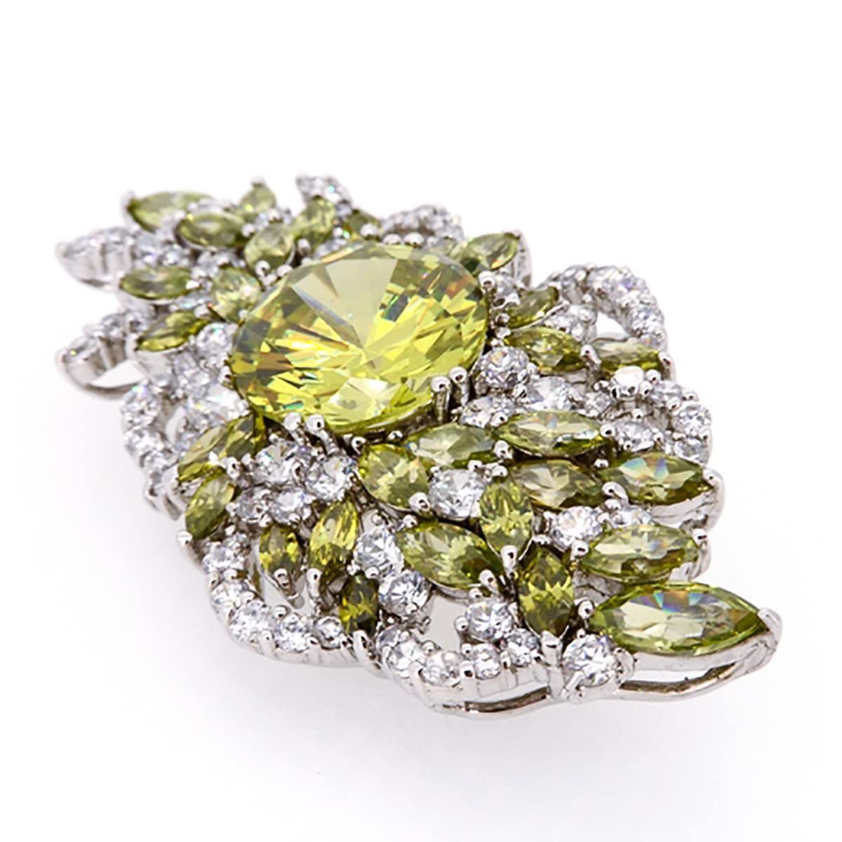 ゴージャスなシルバートーンにセットされた見事なペリドットキュービックジルコニアが特徴で、輝くマーキスカットのペリドットと白い丸いCZが特徴です。宴会に着用するのに最適です