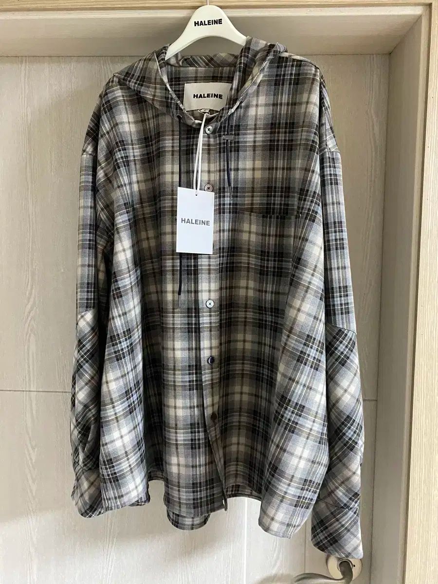 HALEINE アレンヌ バッグサイド CHECK フード シャツ グレー 2