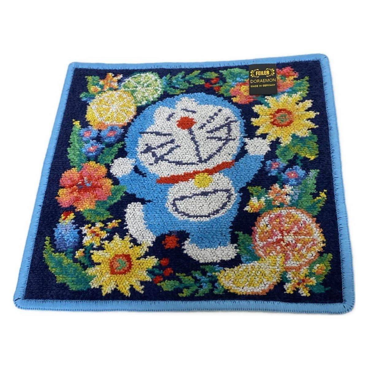 FEILER フェイラー 小物 - ダークネイビー×ブルー×マルチ ハンドタオル ドラえもん 花柄 コットン