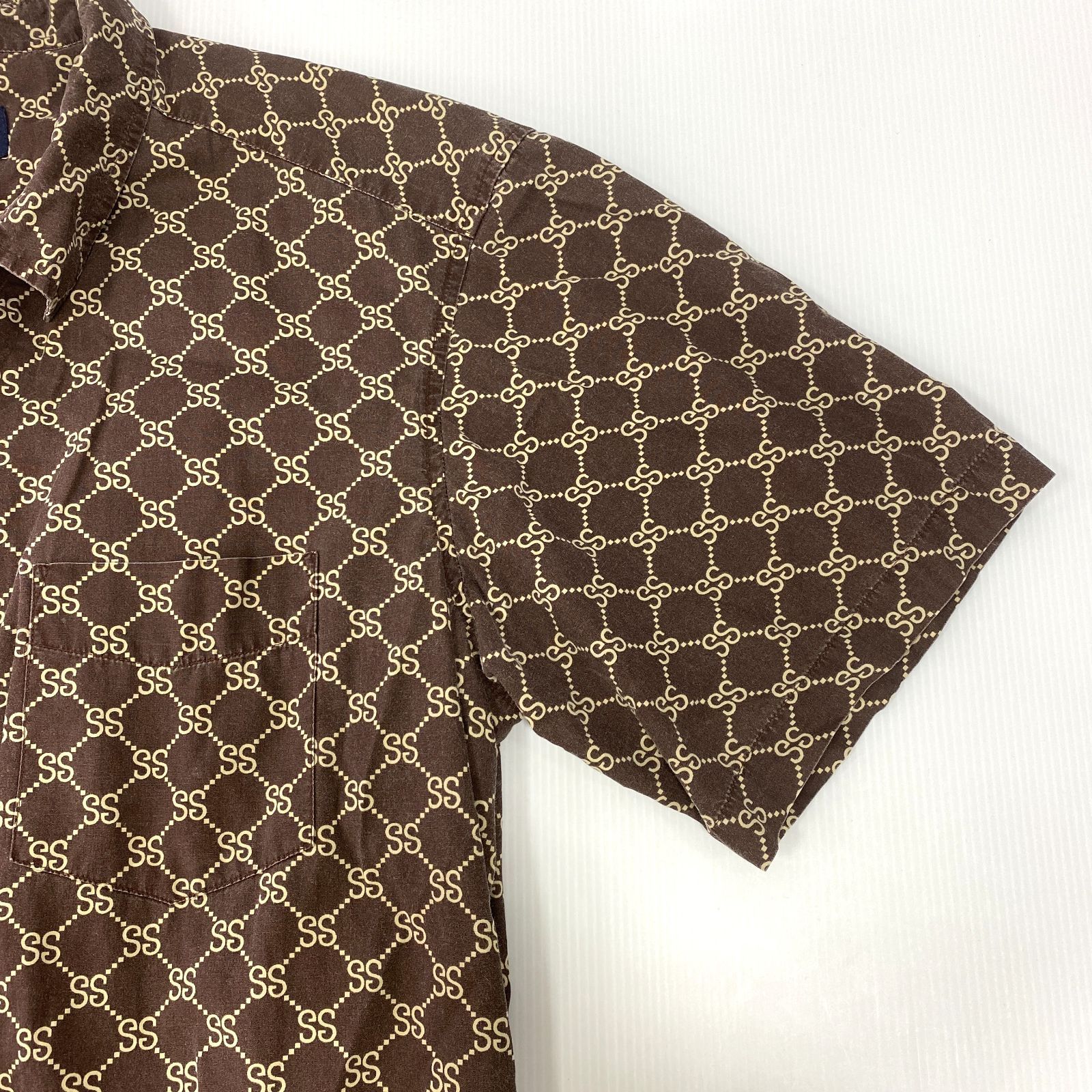 品 STUSSY 半袖シャツ メンズ ブラウン XLサイズ SSリンク モノグラム ステューシー 茶色 GM