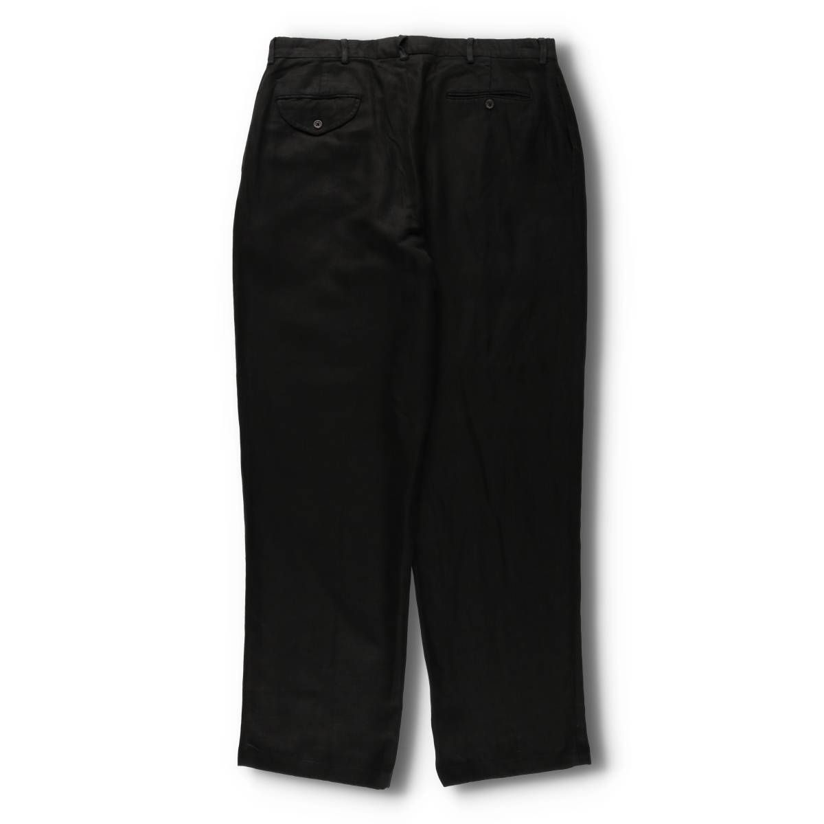 90年代「ポロ・ラルフローレン」のツータックスラックスです。一見するとシンプルな黒のスラックスですが、コットン×リネン混紡のヘリンボーンツイル地。珍しい生地感です。ゆとりを持たせたリラックス感のあるツータックにスラックスです。キレイめなスタイルはもちろん、Tシャツやスウェットと合わせてラフに履きこなすのもクールです。