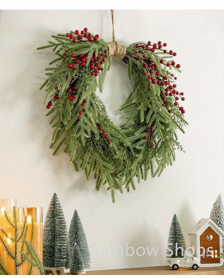 リース 伝統的 ベリーリース 再利用 なホリデーデコレーション 玄関ドア 暖炉用 祝祭 パーティー シーズン ナチュラル50 cm 大きなリース グリーン レッドcp 224