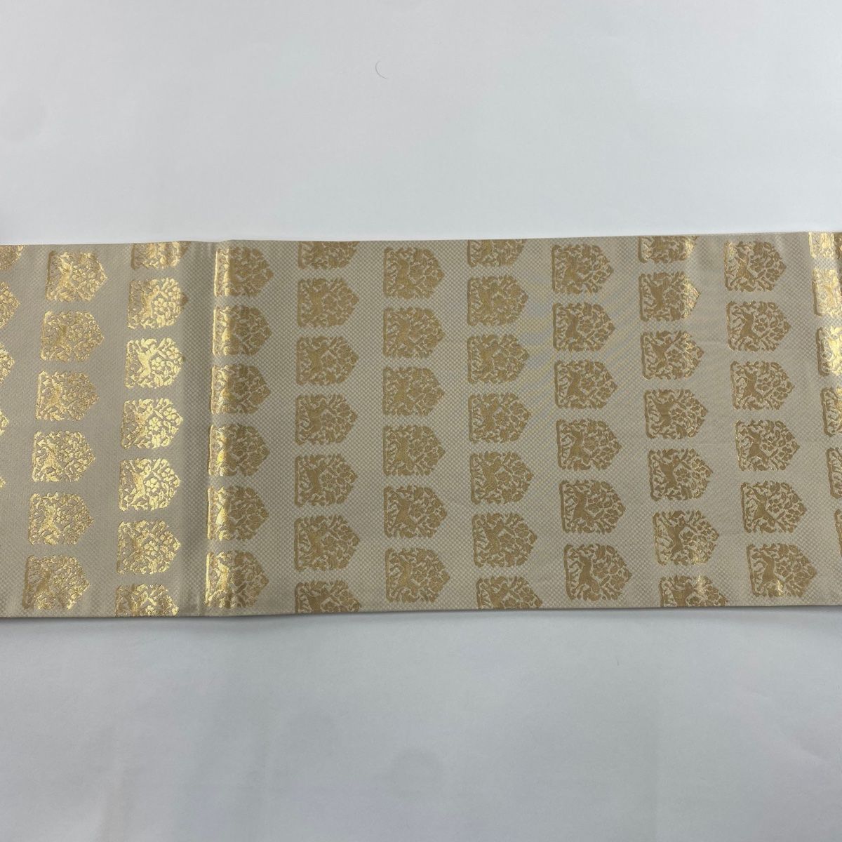 袋帯 龍村美術織物 落款 龍村錦 花兎瓦燈文 ベージュ 全通 正絹
