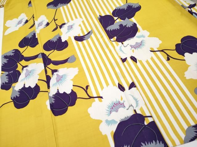 平和屋着物 上 夏物 撫松庵 セオアルファ 小紋 浴衣兼用 枝花文 黄金色 洗える着物 s 5