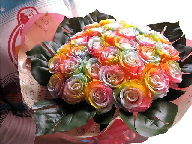 プリザーブドフラワー 花束 レインボーローズ 結婚式 サプライズ 20本使用 枯れずにいつまでもキレイなレインボーローズ プレゼント 成人祝い 記念日の贈り物に のフラワーギフト
