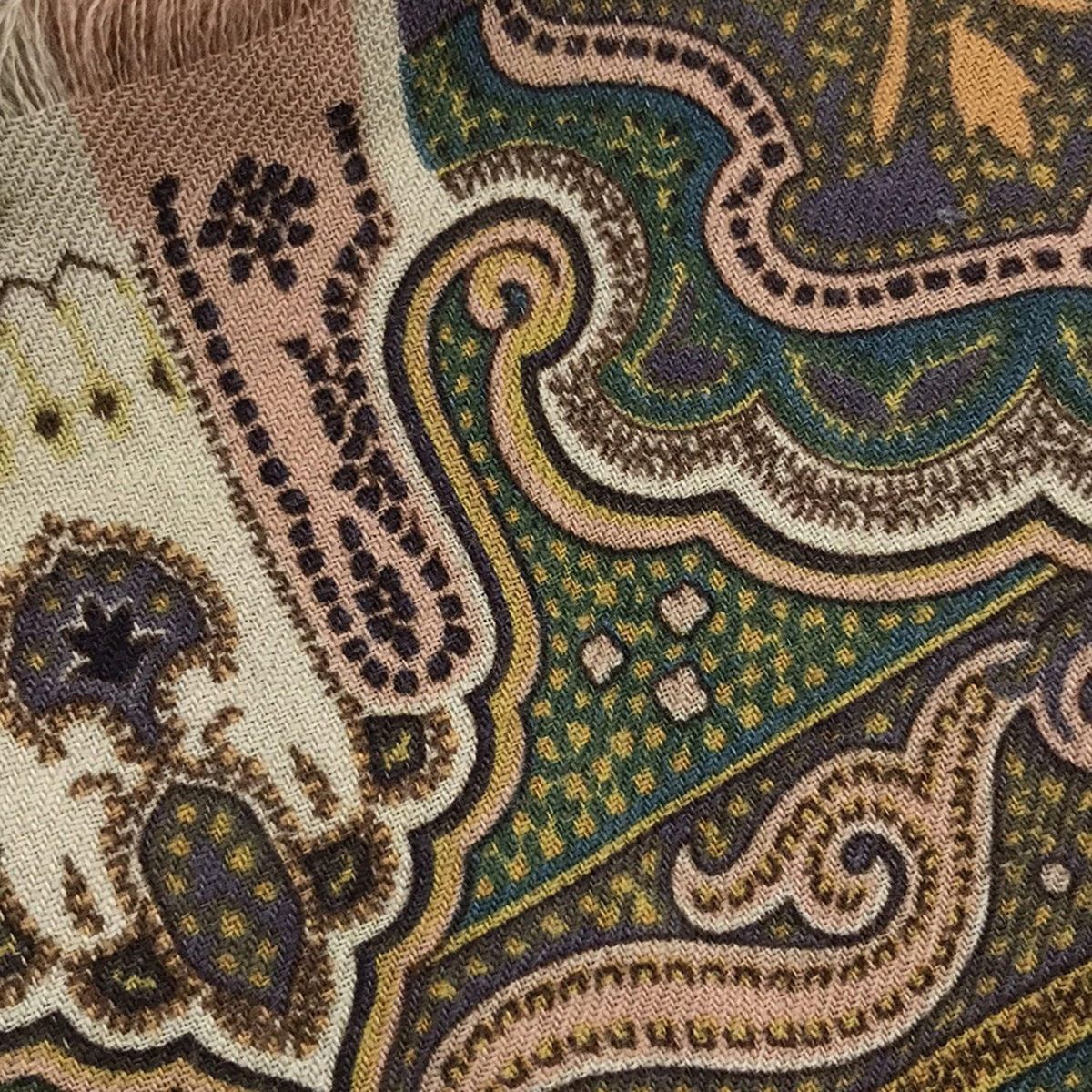 ETRO エトロ ストール ショール - ダークイエロー×ダークグリーン×マルチ ウール シルク
