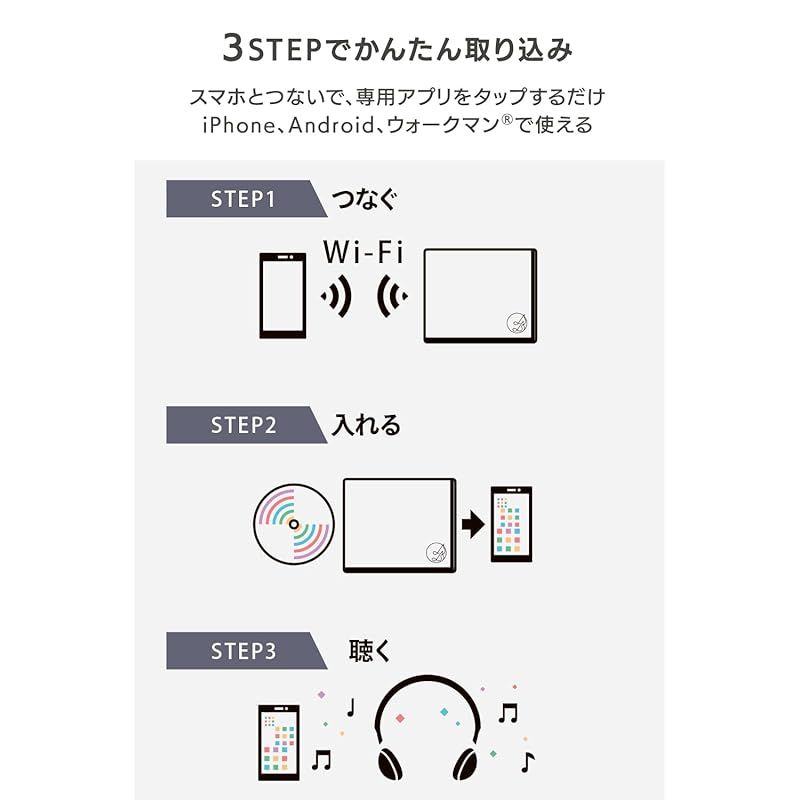 【パソコンなしでCDをスマホに入れて聴くCDレコーダー】「CDレコ6(シックス)」は、お気に入りの音楽CDをスマホに入れて聴けるスマホ用CDレコーダーです。CDレコ6は、スマホとワイヤレスで接続します。専用のアプリ「CDレコミュージック」をインストールし、カンタンな操作でCDを取り込めます。