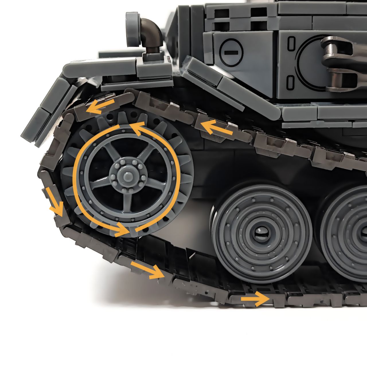 1531PCSのブロックを組み立てると、写真のようなポルシェティーガーが完成します。