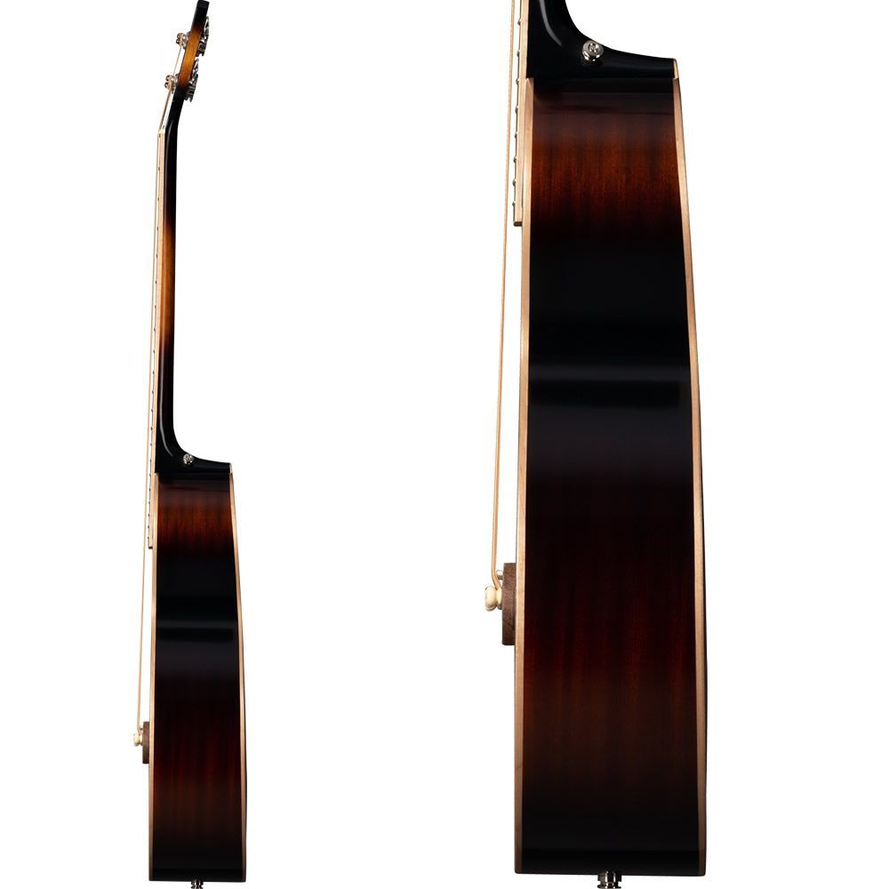 ソリッド・シトカスプルース・トップ、レイヤード・バック&サイドが最高のトーンを生み出し、ミディアムC プロファイルをもつ30.5 インチ・スケールのマホガ ニー・ネックは快適な演奏性をもたらします。