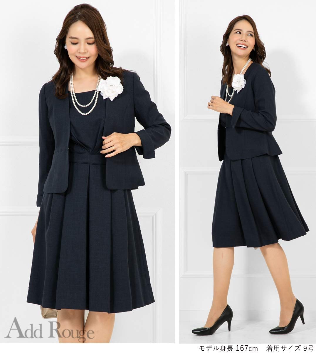 アッドルージュ ワンピース スーツ スカート レディース セレモニー レス ジャケット 2点セット ママ 入園式 入学式 卒業式 卒園式 結婚式 c 5278 15 ABR号 ネイビー
