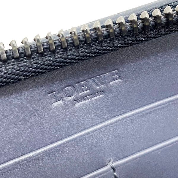 ロエベ 長財布 クルス ジップ アラウンド ウォレット カーフスキン ブルーグレー系 ライトグレー系 ネイビー 紺 131 N 34.F 13 LOEWE レザー 革 水玉 ドット アナグラム ラウンドファスナー長財布 財布 ロングウォレット サイフ