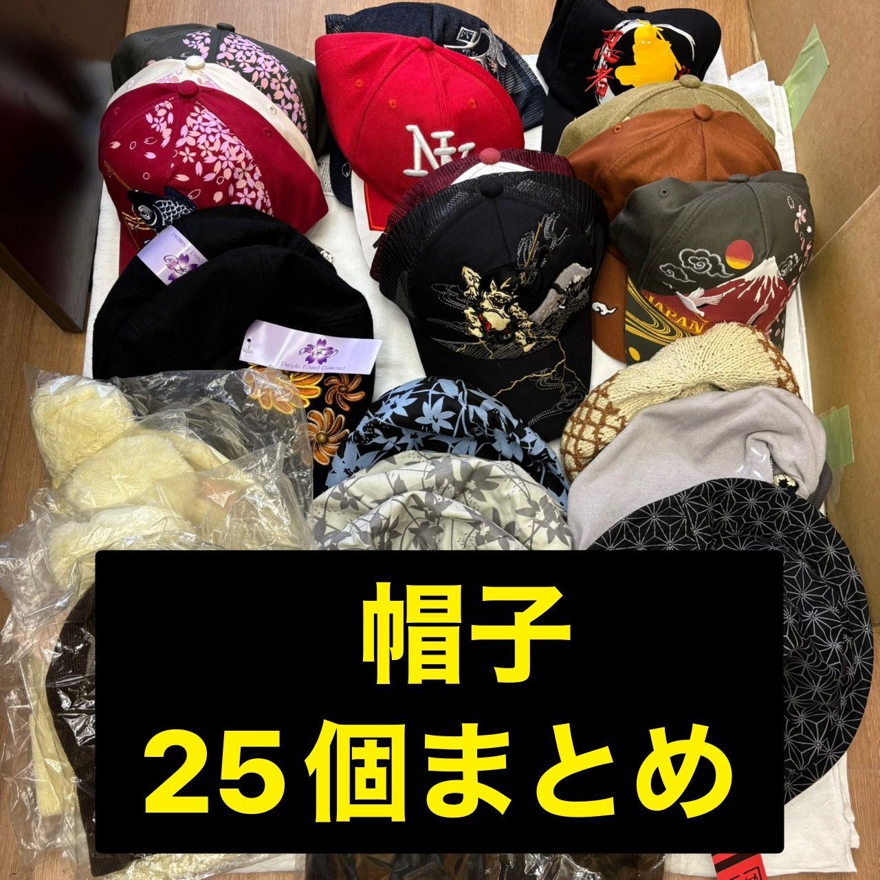 和刺繍入りのキャップやベレー帽、キャスケットなどの帽子をまとめ売りいたします。