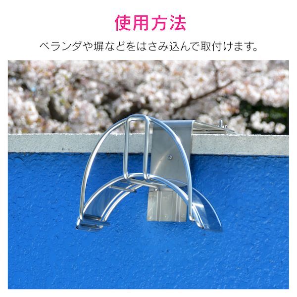 ●材質:ステンレス ●生産国:日本●散水ホースを片付けるためのホースハンガーです。●ベランダや外溝の塀をはさみ込んで取付け、ホースを掛けることができるのでスッキリ片付きます。●はさみ込んで固定するので、壁に穴を開けずに施工できます。●取付厚:10~65ミリ、90~150ミリ●内径15ミリのホースを、約10m掛けることができます。※ホースを巻き取る大きさにより多少変化します。