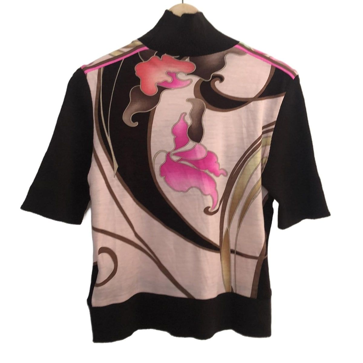 LEONARD レオナール 半袖セーター サイズLL レディース - ライトピンク×ダークブラウン×マルチ ハイネック|花柄