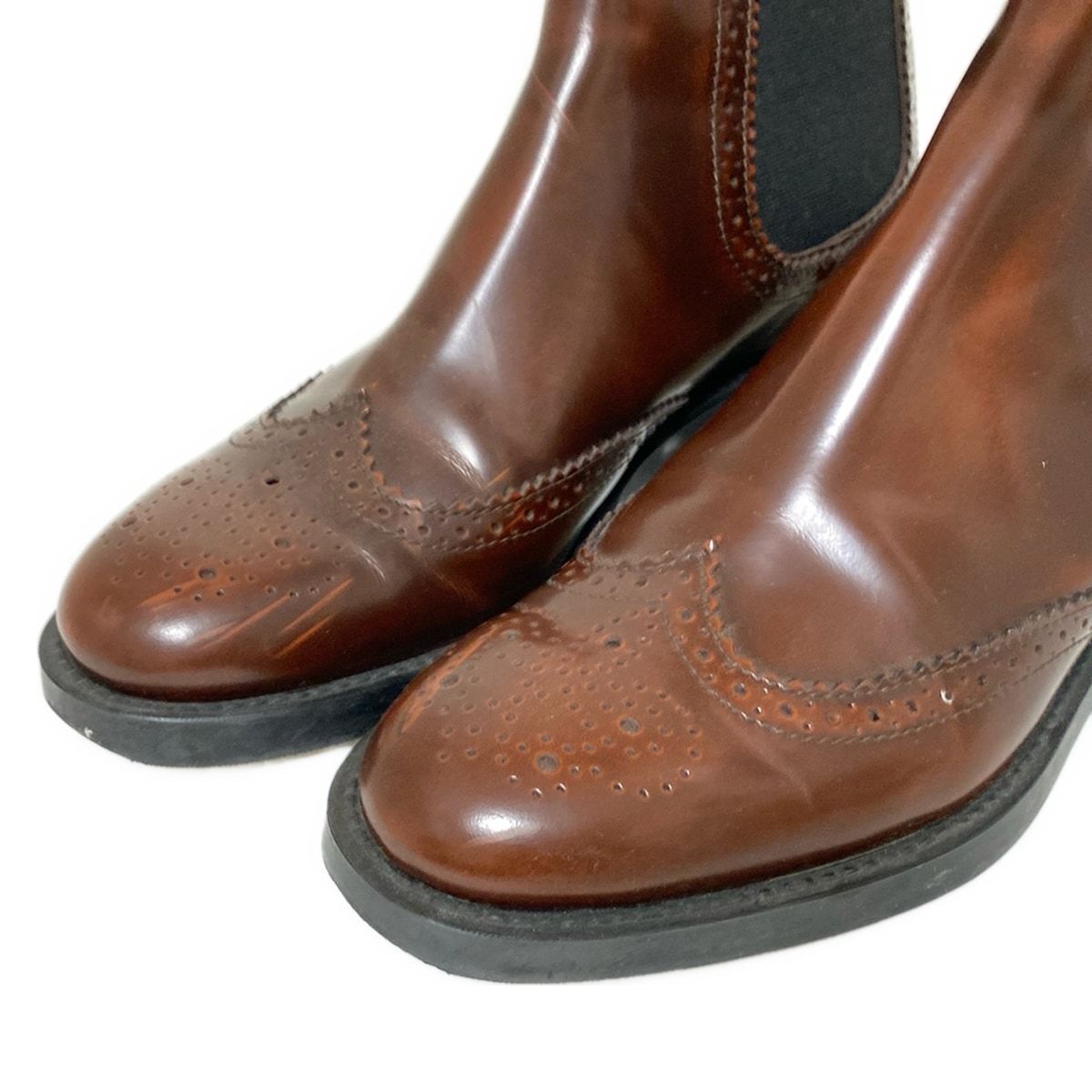 TOD S トッズ ショートブーツ 38 レディース - ダークブラウン サイドゴア ウィングチップ レザー