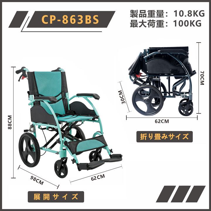 Care-parents 介助用車椅子 介助式車いす 簡易 軽量車椅子 折りたたみ車椅子 背折れタイプ 車イス アルミ製 自用と介助ブレーキ付け 折りたたみ軽量コンパクト 組立不要 持ち運び便利 室内 外出 旅行に適用 グリーン