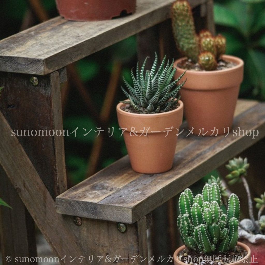 こちらのプランターラックは、木製でヴィンテージ調のデザインが特徴的なアイテムです。3段仕様のこのラックは、グリーンを美しくディスプレイするだけでなく、庭やガーデンに趣を加えます。