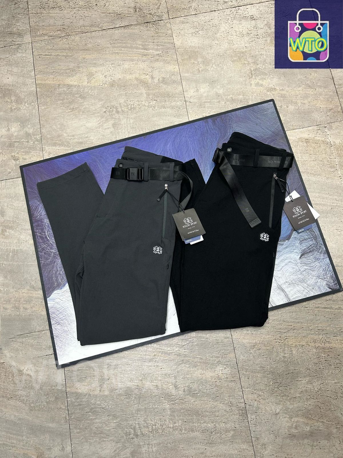 秋の長パンツ KOLON SPORT コロン メンズ用のソフトシェルパンツ アウトドア用の撥水性能のあるスポーツ長パンツ ストレッチのあるクラシックなパターンのパンツ ソフトシェルで速乾性のあるパンツ -WTO輸入1