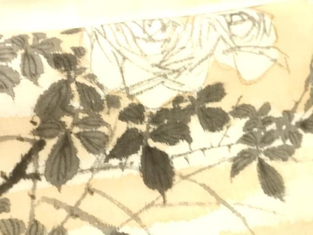 平和屋着物 夏物 九寸名古屋帯 作家物 手描き 紬地 薔薇 草葉文 正絹 cm