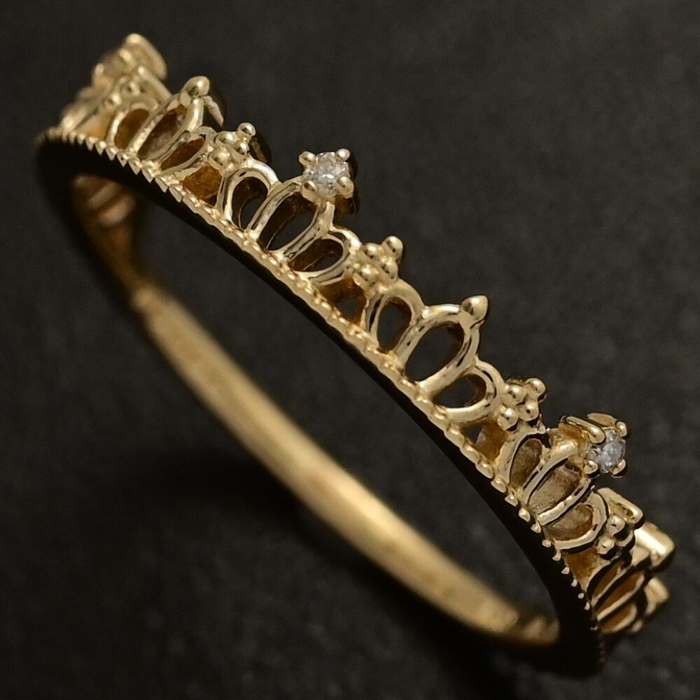 TOCCA トッカ クラウンモチーフ 王冠 3 P・ダイヤモンド リング・指輪 K 10 YG 416-1.2 g 0.01 ct 11号 51 イエローゴールド ♀ S レディース 593566