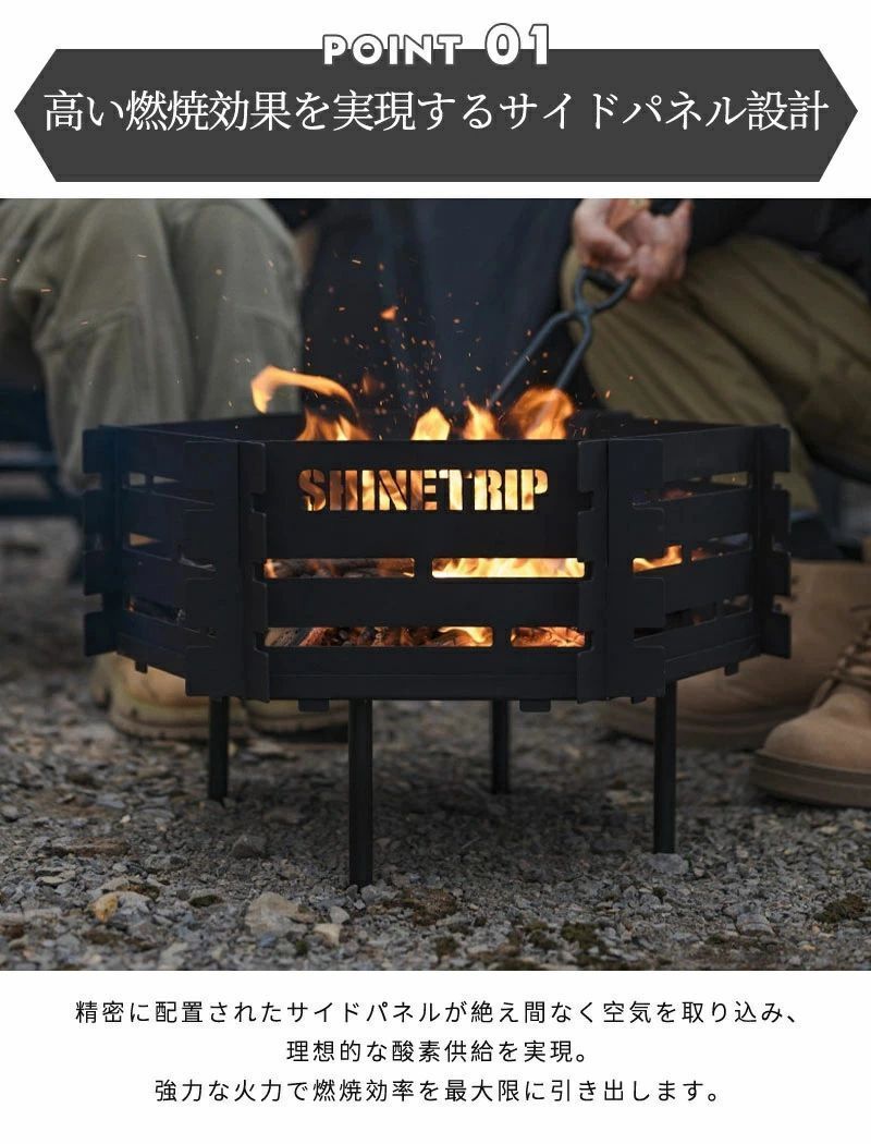 お勧めポイント 独自の透かし模様デザインで、通気性が良く、美しい火を楽しむことができます。また、効率よく火を燃やす機能性も備えています。