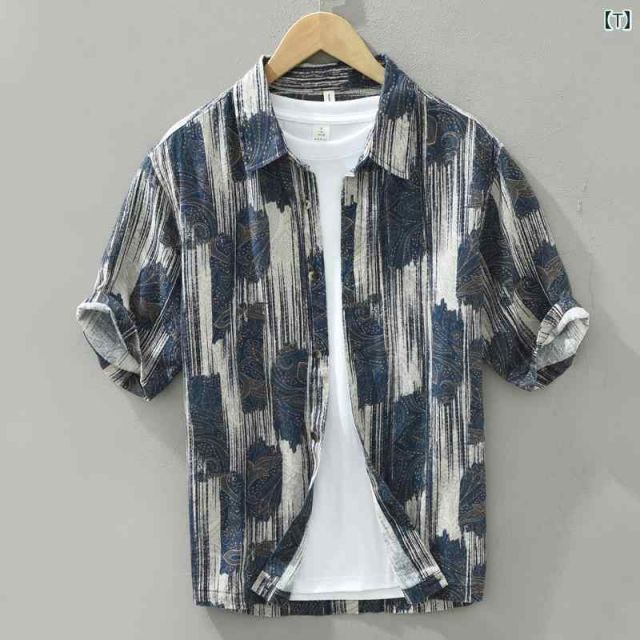 商品名:メンズ ファッション 服 男性用 オシャレ シンプル 大人 かっこいい 大きいサイズ ストリート 紳士服 夏 プリント リネンシャツ 半袖 カジュアル 通気性 コットンリネン 生地 半袖 シャツ
