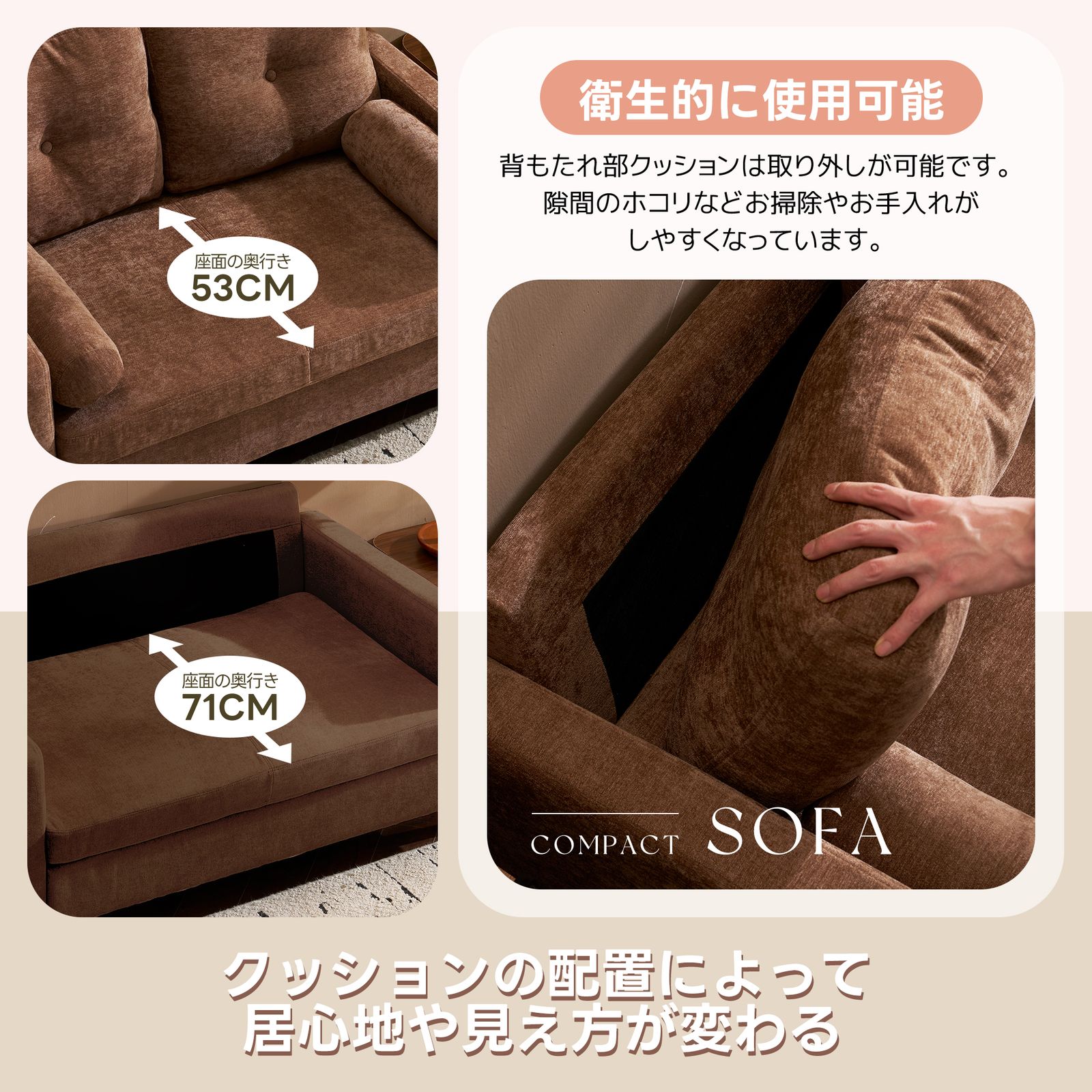 ソファ 二人掛け カウチ 枕付き ソファー おしゃれ 柔軟 ふわふわ 取付 な脚 柔軟な背もたれ 取り外し な背もたれ コンパクト 一人暮らし