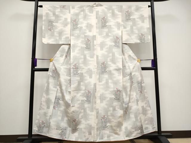平和屋着物 上 本場大島紬 白大島 120亀甲 9マルキ 総絣 短冊枝花文 s 5