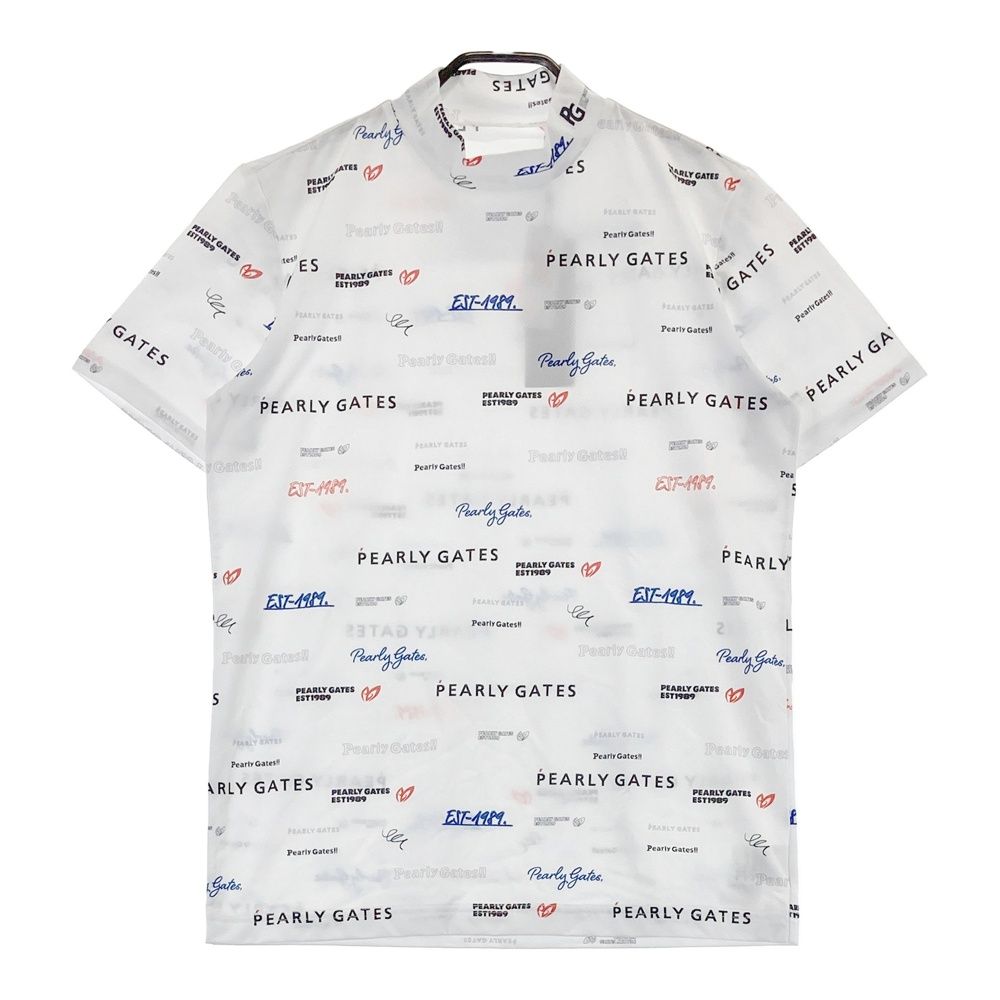 サイズ 4 PEARLY GATES パーリーゲイツ 2025年モデル ハイネック 半袖Tシャツ ロゴ 総柄 ホワイト系 ゴルフウェア メンズ ストスト
