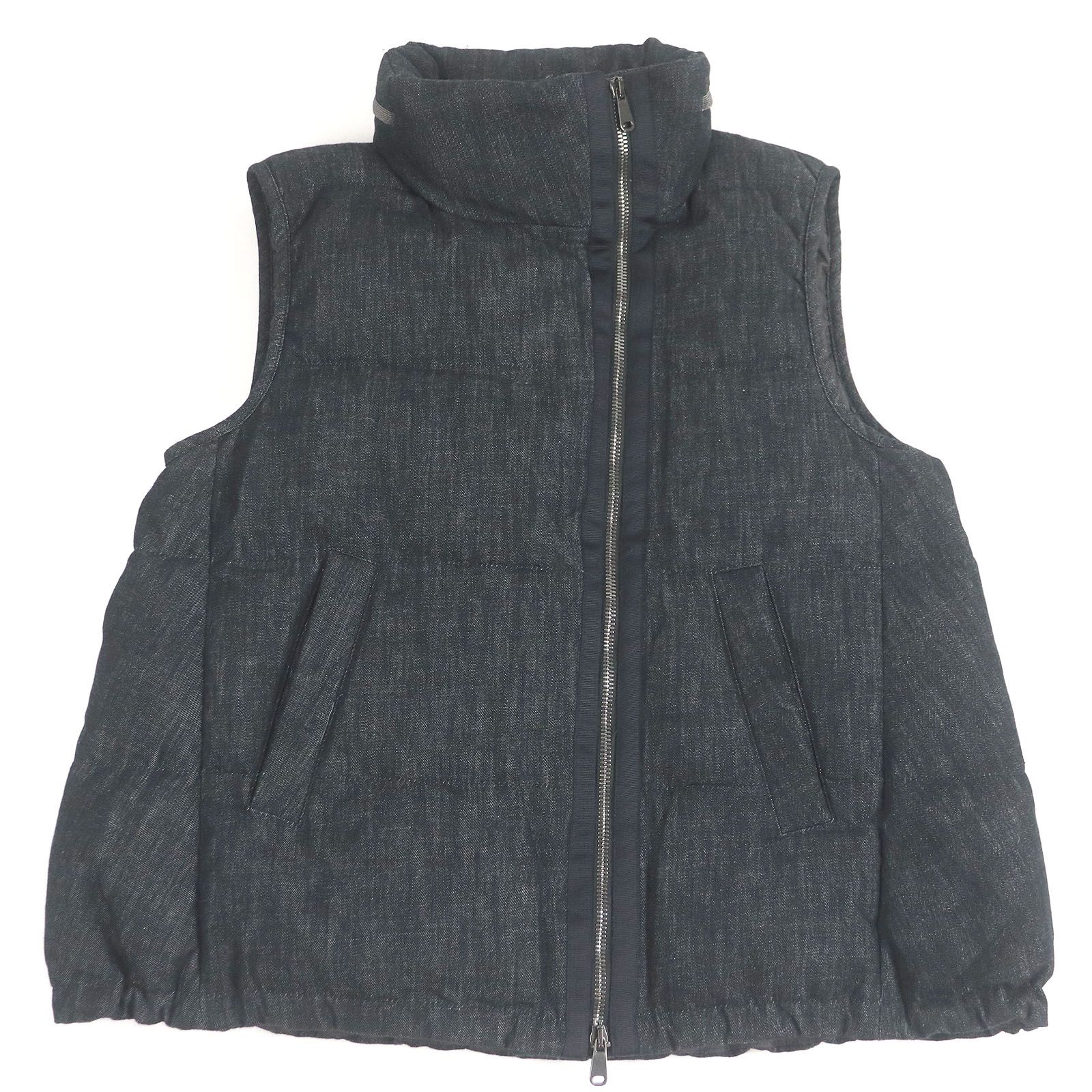 Brunello Cucinelli ブルネロクチネリ フード入り ビジュー装飾 デニム ダウンベスト ジレ ブラック 38 イタリア製 メンズ