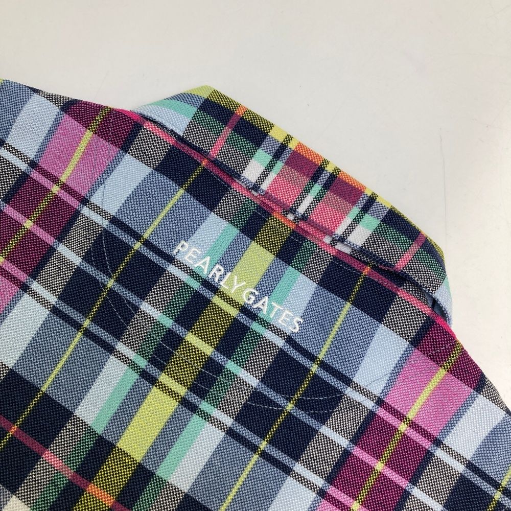 サイズ 0 PEARLY GATES パーリーゲイツ モデル ノースリーブ ポロシャツ チェック柄 ネイビー系 ゴルフウェア レディース ストスト