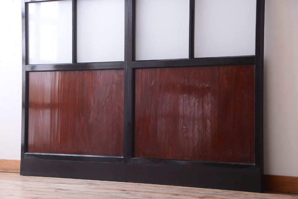 ガラス帯戸 セット アンティーク建具 漆 すりガラス 引き戸 R 020100