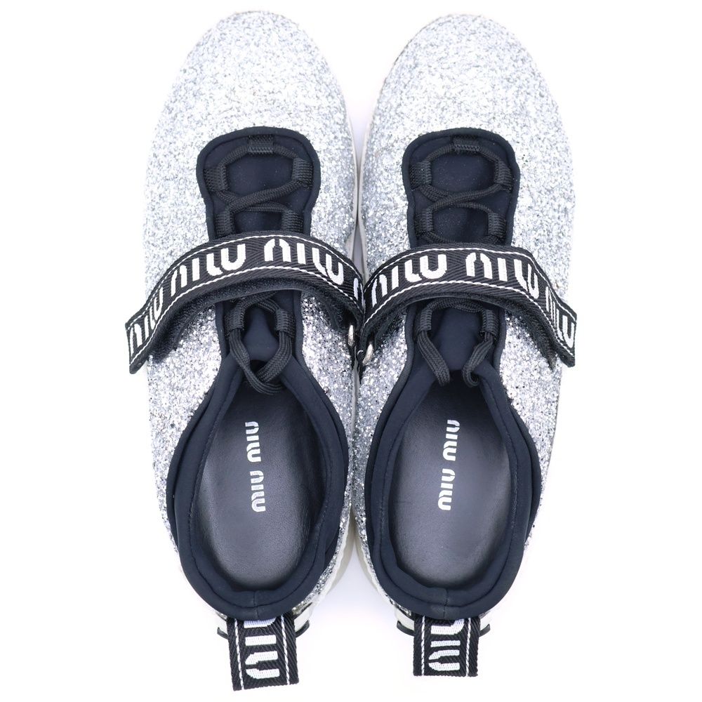 miumiu ミュウミュウ ロゴ ラメグリッター ローカットスニーカー シルバー 5 E 613 B