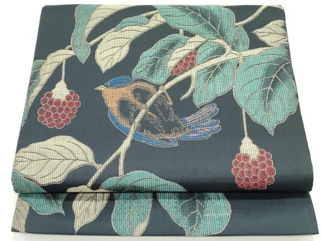 平和屋着物 アンティーク 大正ロマン 六通柄京袋帯 休み鳥南天文 金糸 正絹 ob