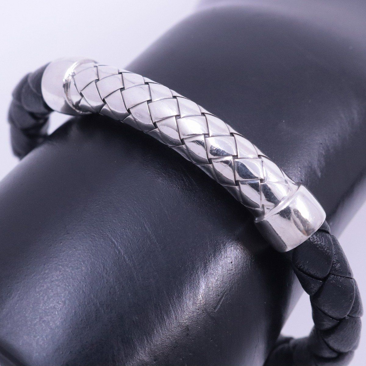 Bottega Veneta ボッテガヴェネタ イントレチャート カフ バングル レザー シルバー925 ブラック