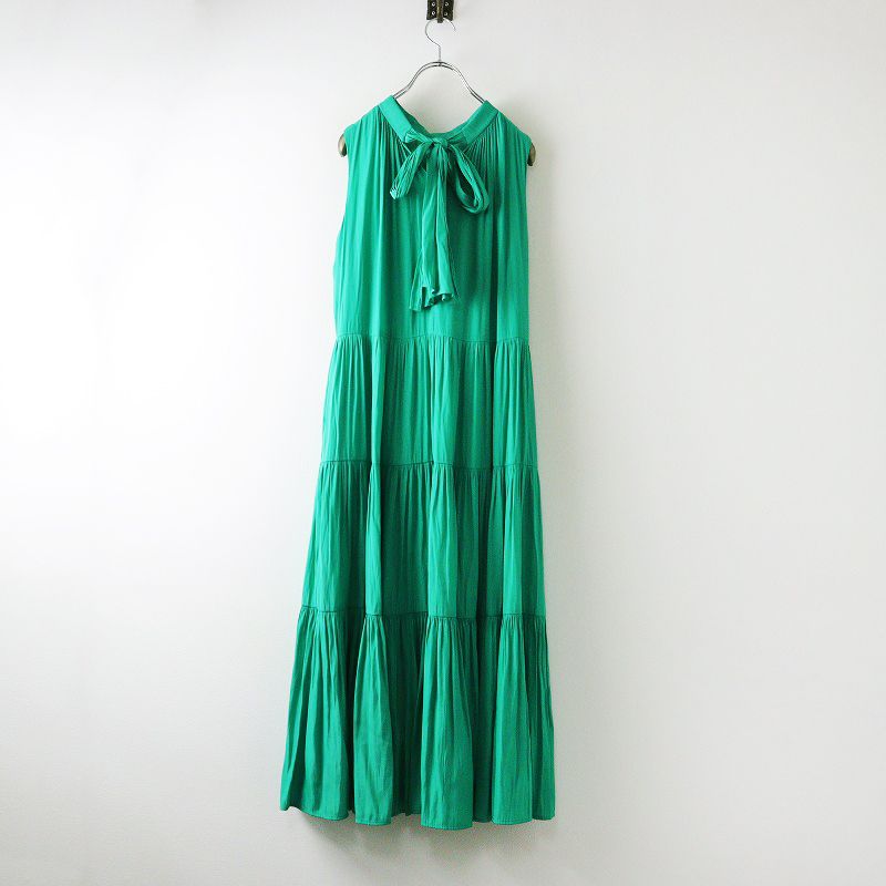 2025 SS セルフォード CELFORD 2 WAYボウタイティアードワンピース 36 グリーン ノースリーブ ドレス フ 前後着