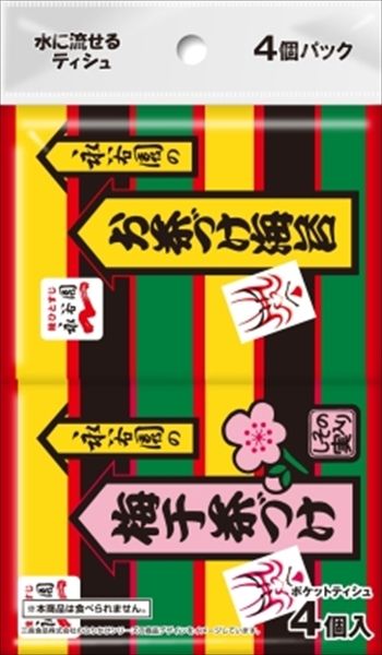 永谷園のお茶づけシリーズより、ポケットティシュが登場。中の個包装は、お茶づけ海苔・さけ茶づけ・梅干茶づけ・たらこ茶づけ・わさび茶づけの5柄のデザインが施されている。